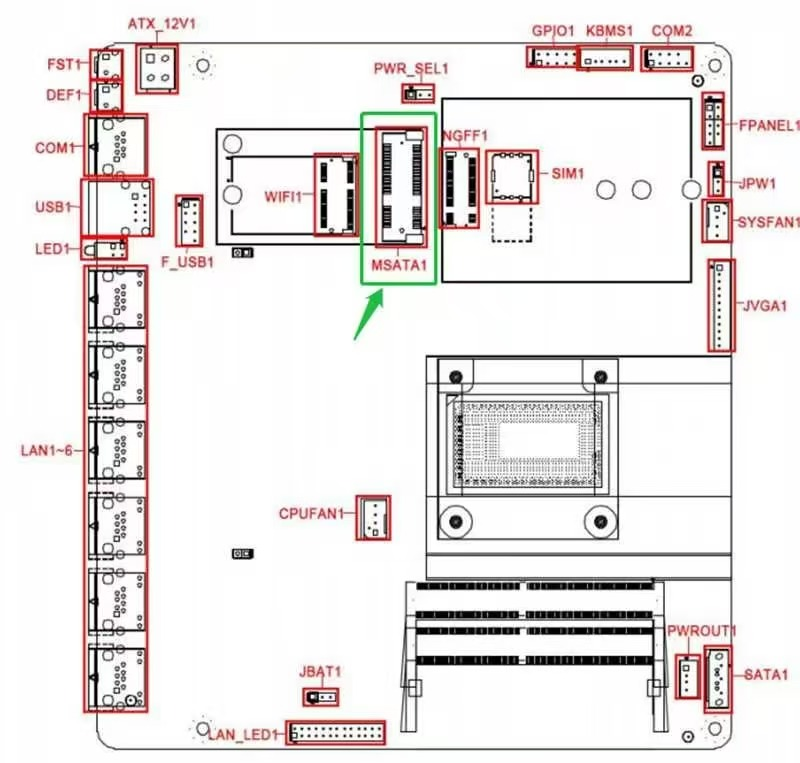 1* MSATA SSD, transmission rate up to 3Gbps only for Flash (Middle Slot see picture MSATA1)