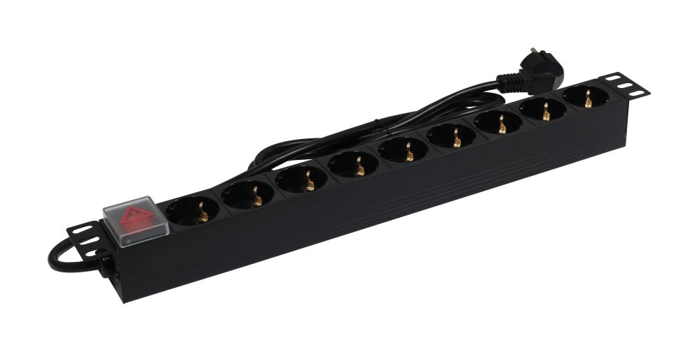 ALLNET 19"zbh. Steckdosenleiste, 9xDosen(CEE7)->Stecker(CEE7), Schalter, Schwarz, Synergy 21