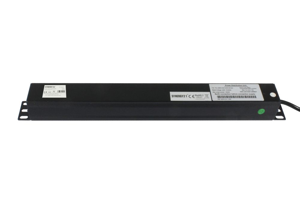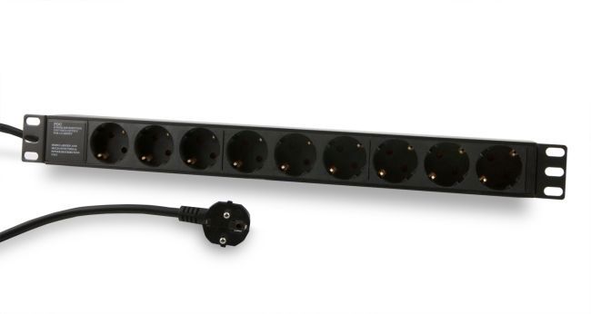 ALLNET 19"zbh. Steckdosenleiste, 9xDosen(CEE7)->Stecker(CEE7), Schwarz, Synergy 21,
