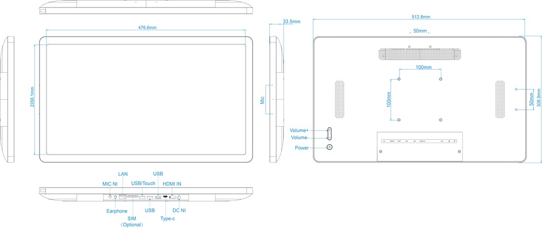 Allnet High Performance Display 21 Zoll, Android 13, RK3588S2, NFC, PoE, HDMI In, Farbe schwarz
