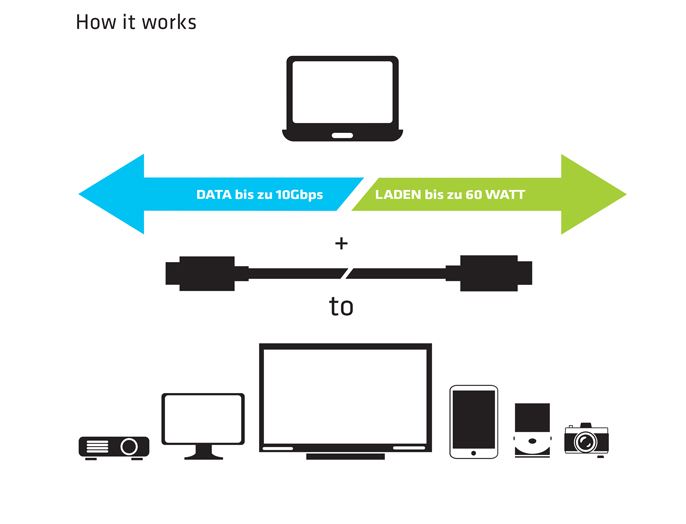 Eingang: USB 3.1 Typ-C Stecker Ausgang: USB Typ-A Stecker Beidseitig steckbarer USB Typ-C Stecker/USB Typ-A Stecker USB 3.1 Daten und Laden durch ein einziges Kabel Unterstützt USB 3.1 Gen 2 SuperSpeed+ Daten bis zu 10Gbps Unterstützt USB Power Delivery 2.0, max. 20V/3A oder 60Watt Vollständig bidirektional Funktioniert mit Windows, Apple OS X, Chrome OS Funktioniert mit allen USB Typ-C fähigen Produkten Kartongröße: 145x145x45mm Kabel: 1000x11x6mm Gewicht: 51g Erfüllte ROHS, FCC und CE EMI Anforderungen