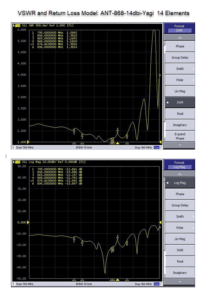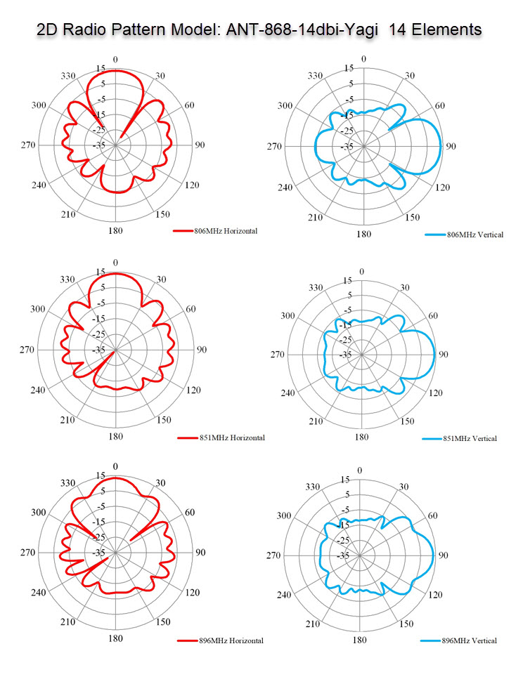 | Model | ANT-868-10dbi-Yagi | ANT-868-12.5dbi-Yagi | ANT-868-14dbi-Yagi |