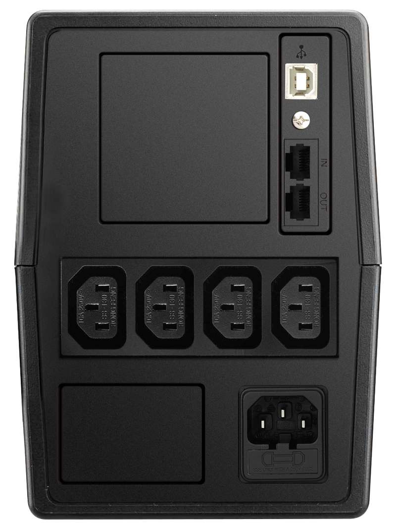 Ausgang: 4xKaltgerätebuchse C13, Modifizierter Sinus, AVR-Automatic-Voltage-Regulation