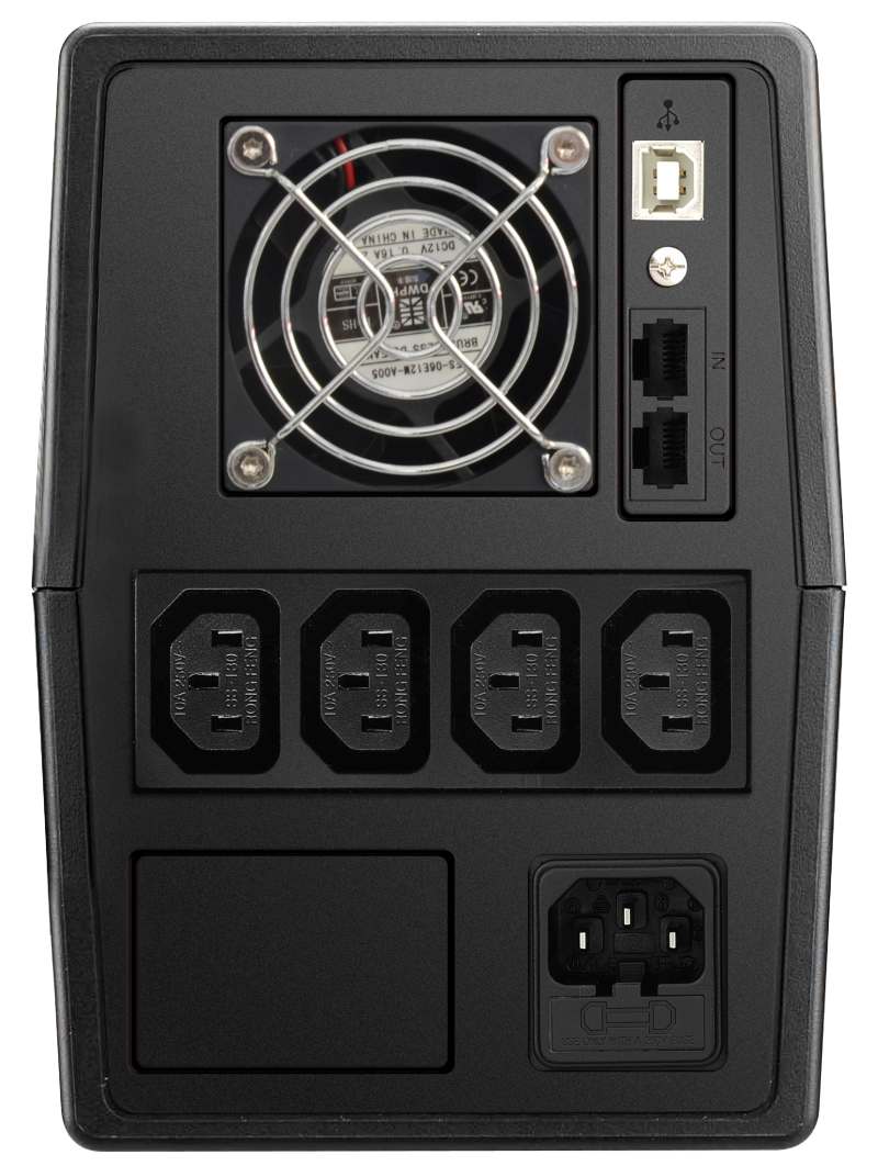 Ausgang: 4xKaltgerätebuchse C13, Modifizierter Sinus, AVR-Automatic-Voltage-Regulation