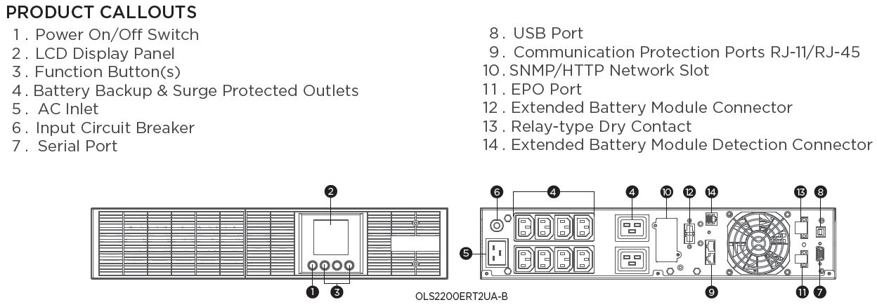 CyberPower OLS2200ERT2UA-B Doppelwandler Online USV 2200VA/1980WRack/Tower 2U, ECO Mode, LCD, USB, Smart-Slot für opt. Netzwerkkarten, Anschluss f. opt. Batterieerweiterung inkl. 19" Railkit
