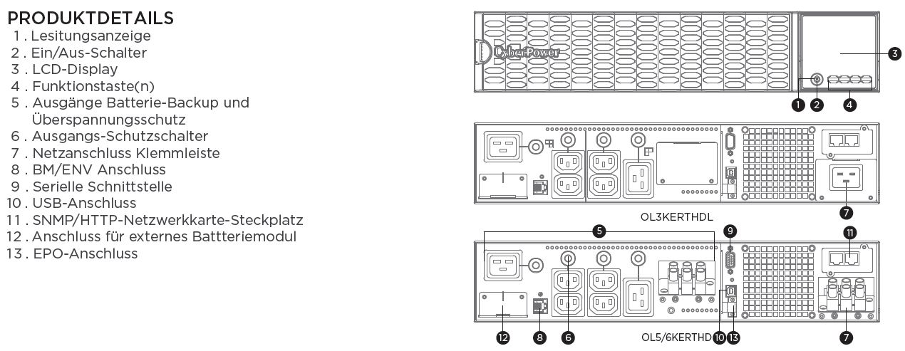 Weiterführende Links zu "CyberPower USV, OL Tower/19"-Serie, 3000VA/3000W, 2HE, On-Line, LCD, USB/RS232, ext. Runtime, inkl."