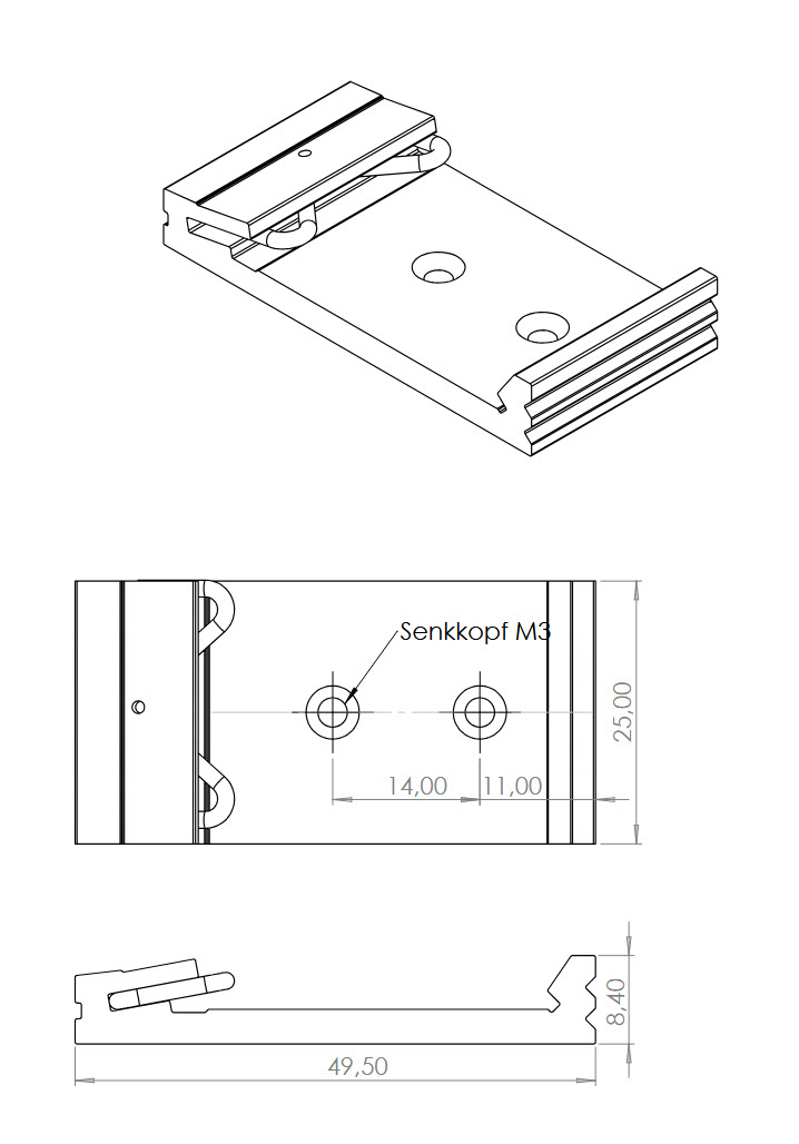HUT-DIN-Schienenadapter für ALL-MC115VDSL2 & ALL-MC116er Serie zum klick auf die HUT-Schiene.