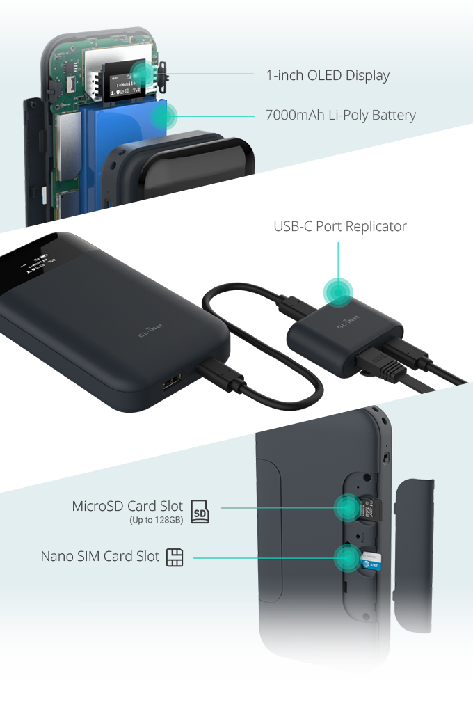 ALLNET LTE Mobile/Travel Router MiFi MUDI-CAT4 v2 GL-E750v2 "OpenWRT" with LAN-Port