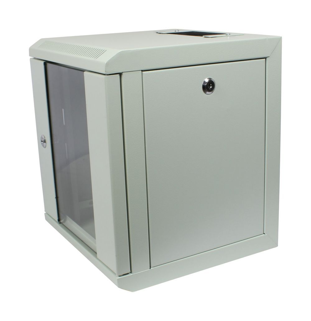 1-teilig Vormontiert, H351xB312xT300mm, Lichtgrau ähnlich RAL7035, Glastüre mit Schloss, 2x Seitenteil mit Schloss, 2xLochrasterprofile 19"(vorderseite), 2x Öffnungen für Kabeleingang unten/oben (B145/T64mm), 1x Bürstenleiste für Kabeleingang oben, Stahlblechgehäuse, 19" Profile vorne veränderbar (max. Veränderbare auf Nutztiefe 220mm), Patchtiefe vorne 60mm, 12xKäfigmutter mit Schrauben,