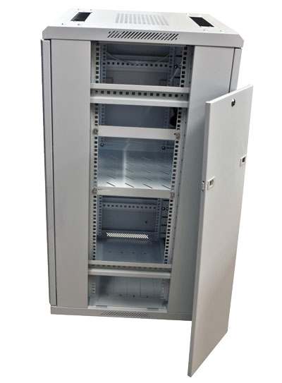 Schrank vormontiert, H2000/B600/T1210mm, Nutztiefe 1000mm, Lichtgrau ähnlich RAL7035, 4xLochrasterprofile 19" (Vorder/Rückseite) mit Einteilung der Höheneinheiten, 1xGlasfronttüre mit Schloss, 1xRücktüre mit Schloss, 2xSeitenteile abnehmbar mit Schloss, verstellbare Füße(H20-70mm), 1xpaar L-Winkel T950/B40/H40mm (Nutzbreite 450mm), 1xZwischenboden T950/B470/H45mm (Nutzbreite 450mm), 1xKabelführungsplatte mit Abdeckung, 4xLüfter mit Thermostat, 20xKäfigmutter mit Schrauben, Schrank komplett zerlegbar, 19"Profilabstand(vorne/hinten) 1000mm(veränderbar bis 1080mm, in Schritten von 20mm), Erdungsbolzen M6(Türen mit Erdungskabel), Kabeleingang mit Bürstenleiste oben(vorne/hinten) und unten(vorne,mittig,hinten), Türen umbaubar(links/rechts), Patchraum vorne 75mm, ohne Sockel, incl. Rollenset(2x mit/2x ohne Feststeller)