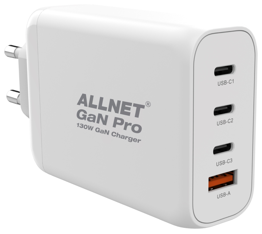 ALLNET Ersatznetzteil GaN QC USB-C PD Netzteil Power Supply 130 Watt **EU PLUG** 1x USB Typ-A, 3x USB Typ-C